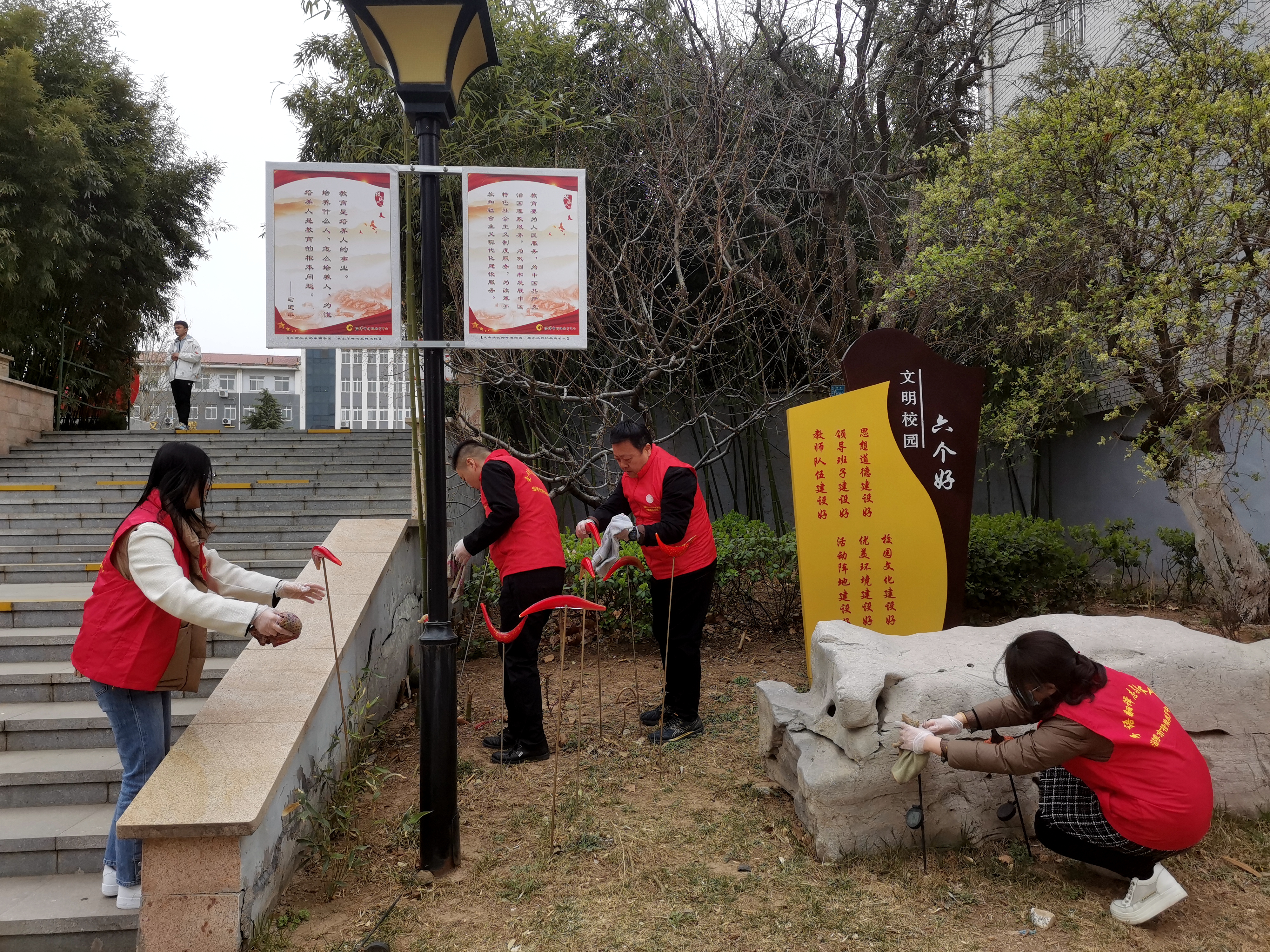 第五黨支部組織黨員開展“傳承雷鋒精神,我們在行動”校園清潔志愿活動,對行政辦公樓、校門口宣傳欄及路牌等進行了清潔,讓校園更加美麗、溫馨。