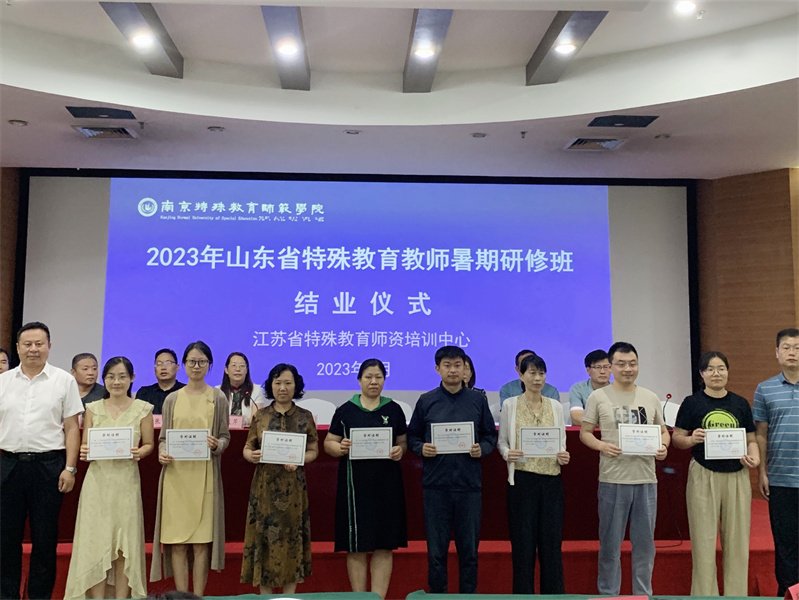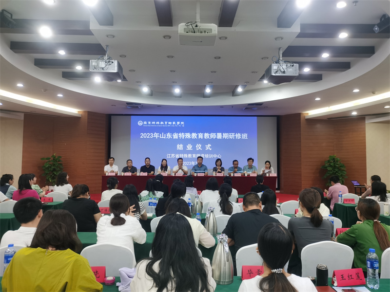 為持續(xù)推動(dòng)淄博市特殊教育普惠融合、高質(zhì)量發(fā)展,進(jìn)一步推進(jìn)特殊教育教師隊(duì)伍建設(shè),提升教師專業(yè)能力,2023年7月17日—7月21日,在南京舉辦的淄博市特殊教育骨干教師專業(yè)能力提升項(xiàng)目培訓(xùn)落下帷幕。南京特殊教育師范學(xué)院繼續(xù)教育處處長、繼續(xù)教育學(xué)院(江蘇省特殊教育師資培訓(xùn)中心)院長丁寶龍出席結(jié)業(yè)儀式并致辭。淄博市特教中心黨委委員、副校長賈益芹出席結(jié)業(yè)儀式并講話。來自淄博市特教中心及各區(qū)縣特教學(xué)校(中心)的99位骨干教師參加了本次活動(dòng)。