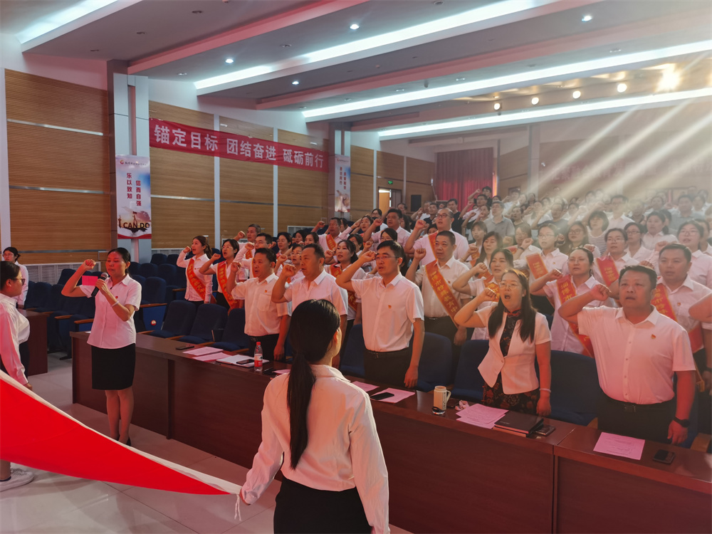 同時(shí),組織了教職工宣誓儀式。誓詞鏗鏘有力,擲地有聲,飽含著每位淄特人肩負(fù)使命的初心,擔(dān)當(dāng)責(zé)任的決心,踔厲奮發(fā)的恒心,誓做學(xué)生健康成長(zhǎng)的引路人。