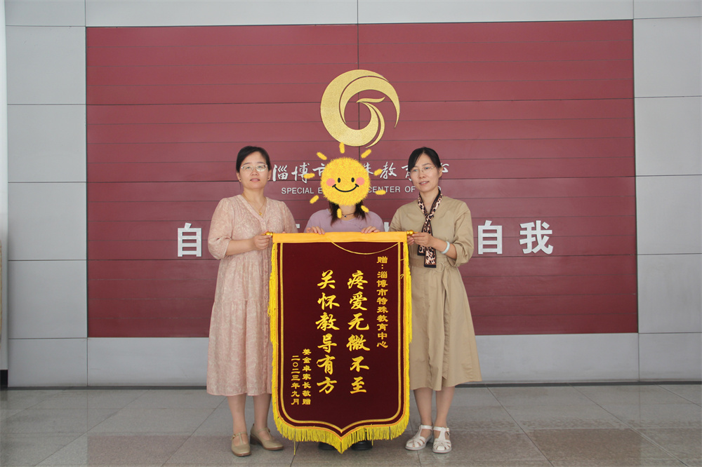 9月15日,送教學(xué)生家長(zhǎng)專(zhuān)程趕來(lái)學(xué)校,滿懷感恩之心贈(zèng)送題有“疼愛(ài)無(wú)微不至,關(guān)懷教導(dǎo)有方”的錦旗,以此感激學(xué)校對(duì)學(xué)生的細(xì)心培育,感恩送教老師們的辛勤付出。