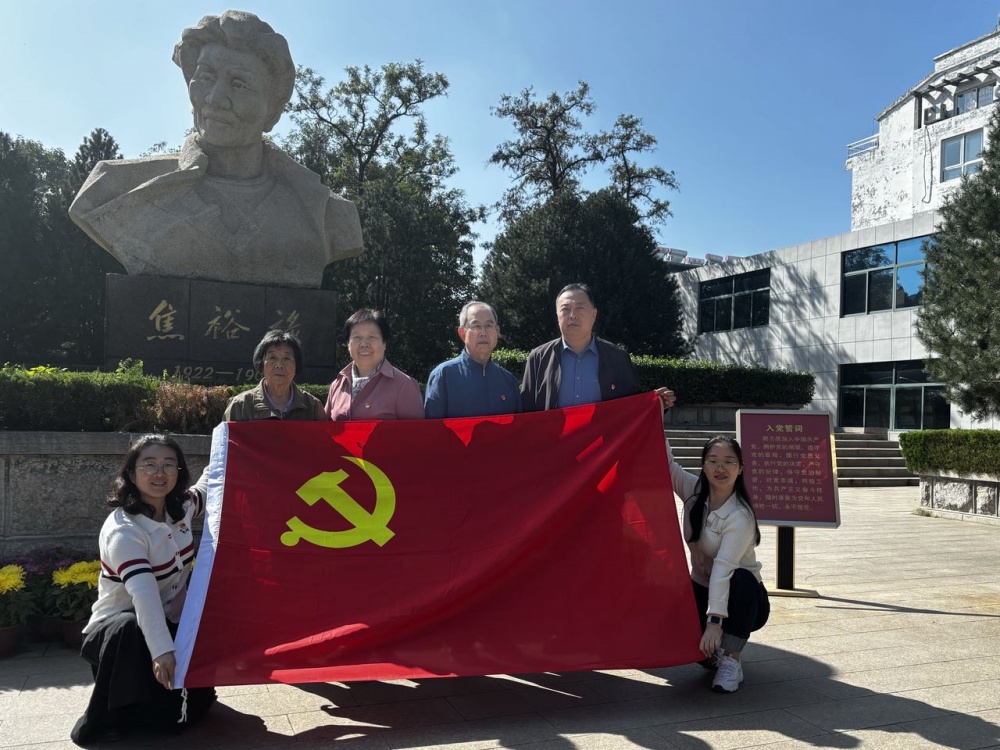 在焦裕祿紀念館,退休教職工們一起參觀紅色基地,重溫紅色記憶。一張張珍貴的照片,一件件飽經(jīng)風霜的遺物,生動地再現(xiàn)了焦裕祿同志的生平事跡,仿佛把大家?guī)У搅水斈杲乖5搮⒓痈锩鼞?zhàn)爭、帶領蘭考人民治理“三害”、戰(zhàn)天斗地的年代。在紀念館,大家深切感受到焦裕祿同志在艱苦生活、奮力戰(zhàn)斗中鑄就的“親民愛民、艱苦奮斗、科學求實、迎難而上、無私奉獻”的焦裕祿精神。在鮮紅的黨旗下,退休黨員同志們莊嚴地舉起右手,握拳宣誓,重溫入黨誓詞。