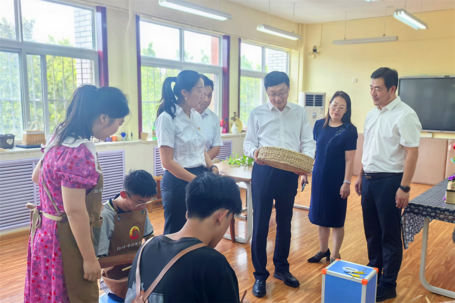 王曉東書記實(shí)地察看了校園環(huán)境與文化建設(shè),認(rèn)真聽取了學(xué)校發(fā)展歷程、辦學(xué)理念和教學(xué)模式介紹,詳細(xì)了解學(xué)校在教育教學(xué)、課程建設(shè)及職業(yè)教育等方面取得的成效。他先后走進(jìn)培智部、職教部,親切看望師生,與大家互動(dòng)交流,并送上節(jié)日祝福。期間,王曉東特別關(guān)注學(xué)生實(shí)習(xí)與就業(yè)情況,對(duì)學(xué)生們精心制作的草編、掐絲琺瑯等職教作品給予高度評(píng)價(jià)和充分肯定。
