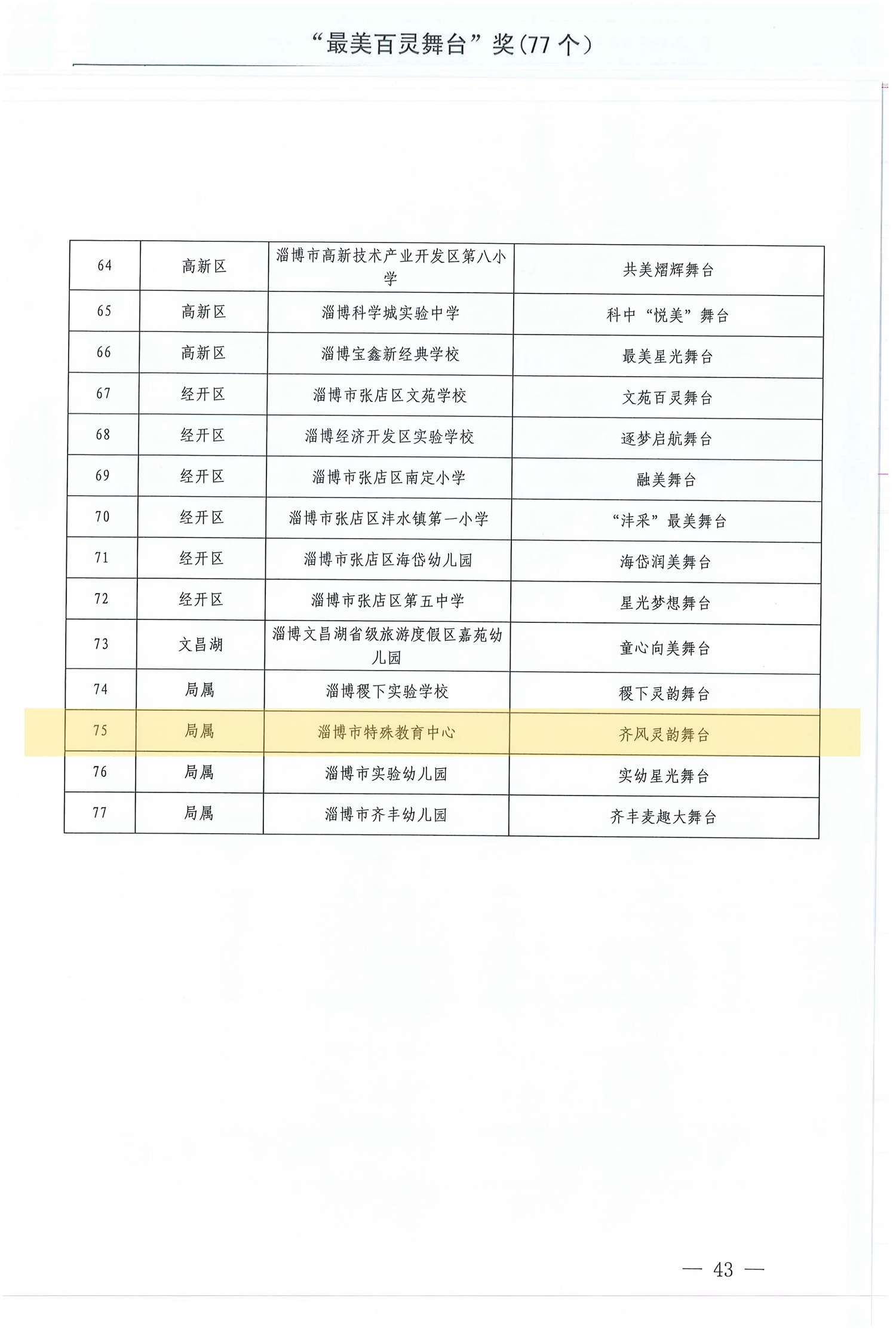 ?“百靈”聲聲傳捷報,藝彩灼灼耀特教!近日,淄博市第二十七屆學生“百靈”藝術(shù)節(jié)活動獲獎成績公布,淄博市特教中心選送的3個藝術(shù)展演類節(jié)目和2件藝術(shù)作品類作品全部榮獲一等獎,學校被評選為“最美百靈舞臺”。